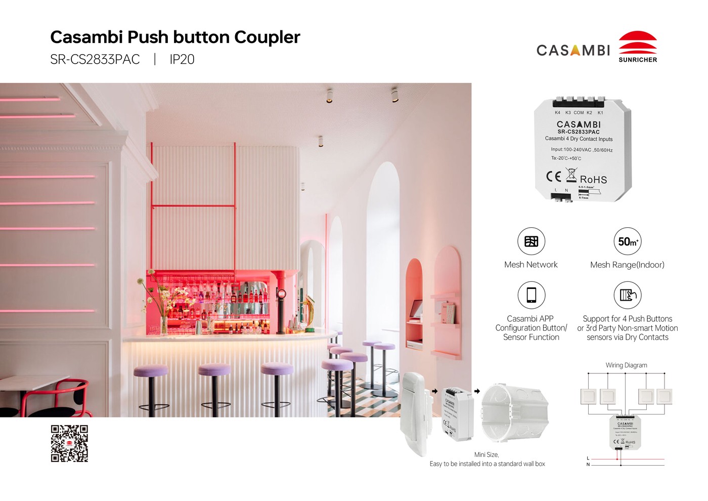 - Casambi Push button Coupler SR-CS2833PAC